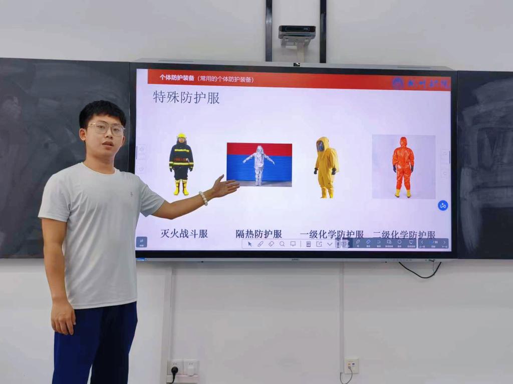 本次课程改革紧扣 “增加实践内容、减少纯理论内容” 核心目标,《应急救援装备》教师邢鹏的课改举措极具创新性与实用性。他针对课程中装备认知、操作教学的重点,大幅压缩纯理论知识篇幅,在课件优化中融入装备对应的国标要求、操作注意事项及类型区分等实践导向内容;创新采用集梦 AI 生成 “个体防护装备规范穿戴视频” 作为教学素材,搭配大量装备实物图片与实操演示视频,将抽象的装备原理转化为具象认知;同时在课件中嵌入智慧树平台课前预习、课中随堂测验及课后复习入口,构建线上线下融合的实践教学闭环,切实通过技术赋能与内容优化,将 “减理论、增实操” 的课改要求落到实处。