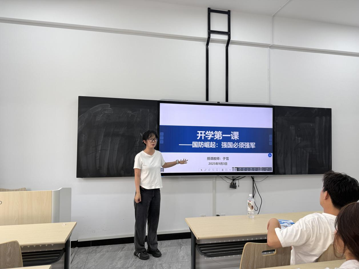 于雪老师则以“国防崛起:强国必须强军”为主题,通过三个篇章展开教学。第一篇章用《南京照相馆》短片对比历史与当下,让学生感受“弱国无国防”;第二篇章借古巴导弹危机纪录片,将危机管理与国家命运关联;第三篇章以高校实验室爆炸应急处置案例,讲解危机应对方法。课程布置“一分钟任务”,助力学生培养风险意识,最后以励志话语收尾,激励学生将爱国情怀化为风险意识。