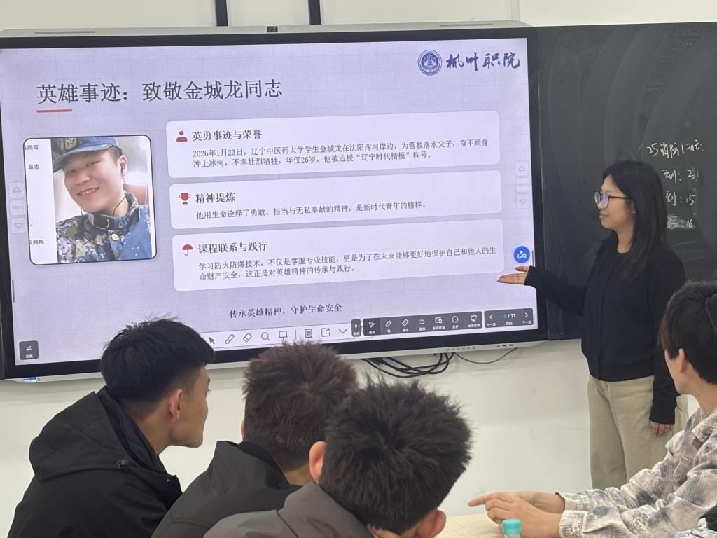 从“时代楷模,英雄本色”中阐释“忠诚、担当、奉献”的精神内核,到“危急时刻,挺身而出”中再现金城龙同志舍己为人的英勇瞬间;从“平凡岗位,极致坚守”中感悟英雄源于日常的点滴积累,到“精神永存,接续奋斗”中将英雄精神转化为勤学笃行的行动要求。张老师的课堂让同学们在识英雄、颂英雄、学英雄、做英雄的递进式学习中,深刻理解了英雄精神并非遥不可及,而是体现在每一次的选择与坚守中,从而坚定理想信念,锤炼高尚品格,以昂扬姿态迎接新学期。