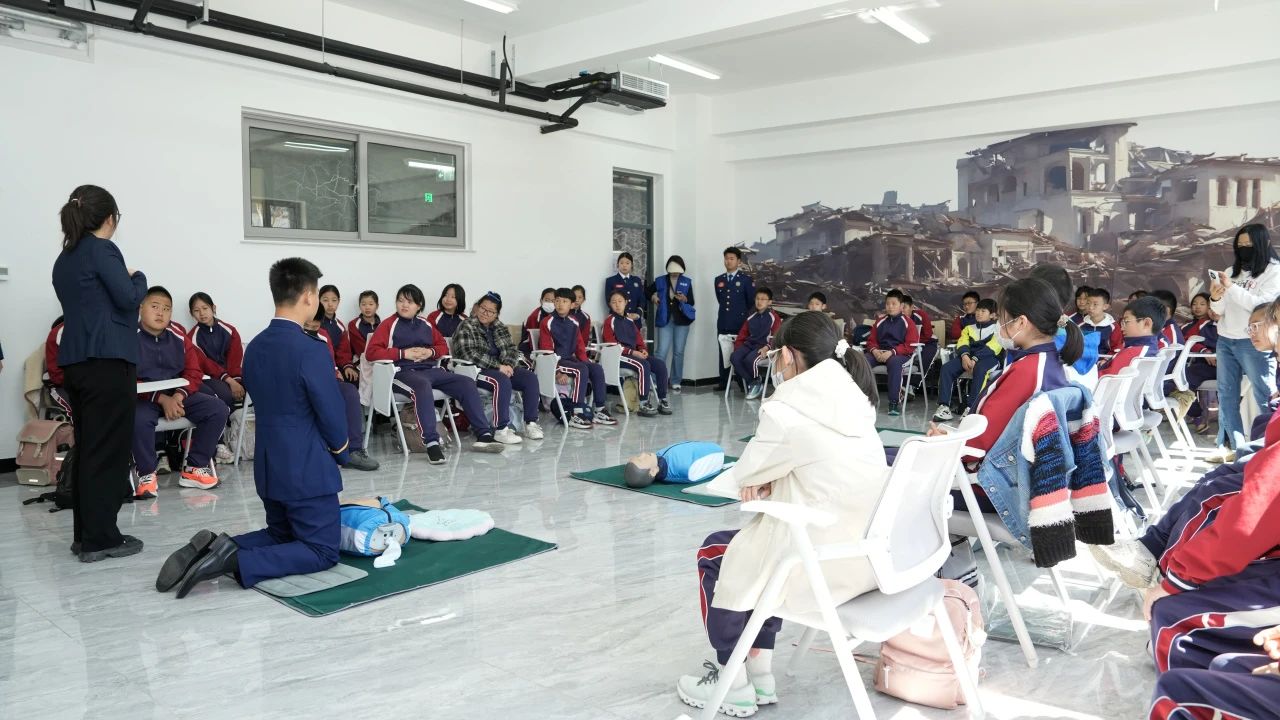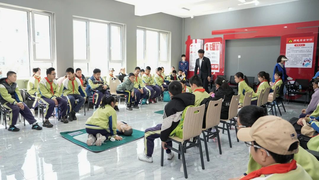 “遇到火灾时,湿毛巾要折叠几次才能有效过滤烟雾?”在安全应急体验馆,孩子们通过VR模拟火灾逃生场景,在烟雾弥漫的虚拟楼道中掌握弯腰低姿、捂鼻前行的正确姿势。地震模拟平台前,孩子们亲身感受不同震级的震动,学习“伏地、遮挡、手抓牢”的防震三要素。心肺复苏实操环节,专业导师手把手指导,孩子们认真地在模拟人上练习按压节奏,“1001、1002……”的计数声此起彼伏。